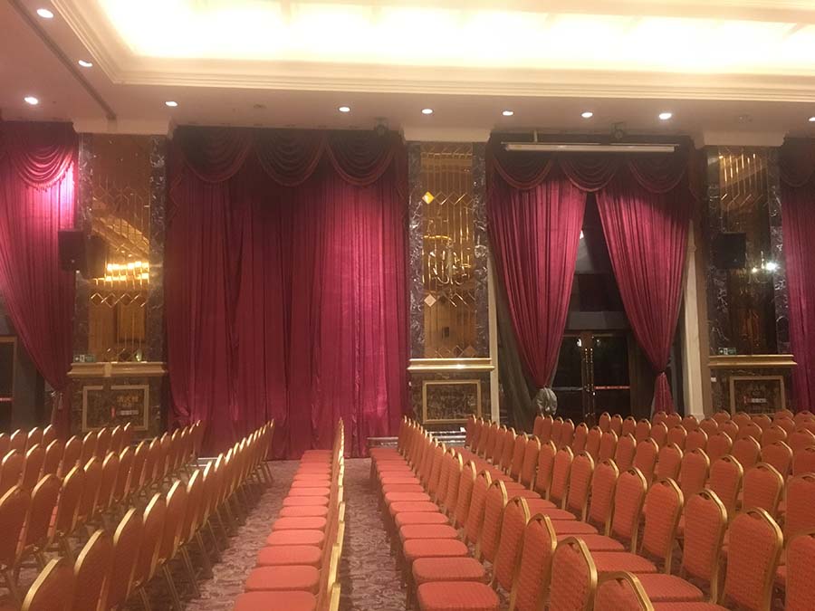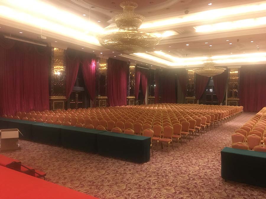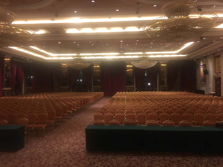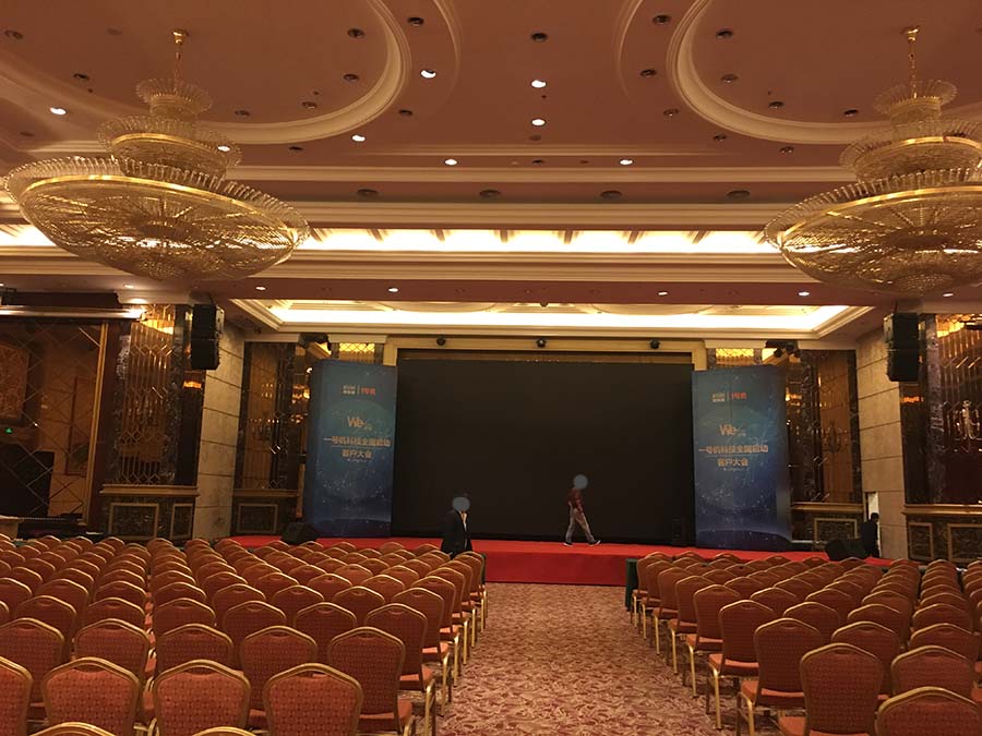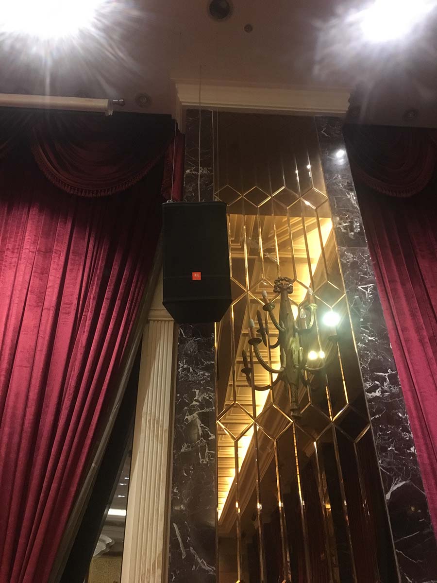 此次國(guó)際宴會(huì)廳1200平米,全部選用JBL音響,主音箱選用JBL線陣音箱,補(bǔ)聲音箱選用JBL CV系列音箱,返聽選用PRX400系列音箱。功放選用皇冠CROWN功放,BSS處理器以及萊斯康效果器,聲藝調(diào)音臺(tái)。