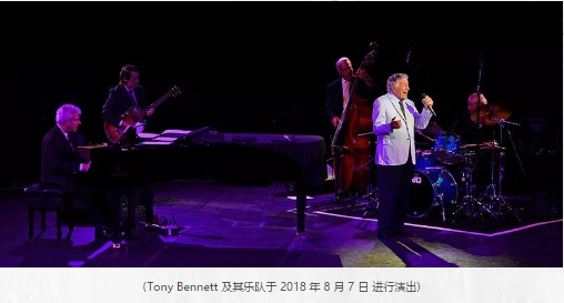 傳奇藝術(shù)家 Tony Bennett 盡管已 92 歲高齡,Bennett 仍顯得精神矍鑠,其舞臺表現(xiàn)始終熠熠生輝。Tom Ranier 為其進行鋼琴伴奏,Harold Jones 擔(dān)任鼓手,Marshall Wood 為貝斯手,Gray Sargent 則擔(dān)當(dāng)了吉他手。他的演出曲目包括一系列經(jīng)典作品,如 “I Left My Heart in San Francisco”,演出精彩紛呈,引得觀眾起立致意。