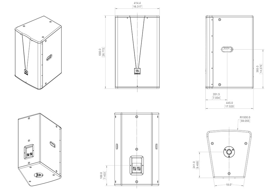 15”定制低音單元,提供高效的電聲轉(zhuǎn)換率JBL 2408-2壓縮高音單元,降低系統(tǒng)失真率箱體采用15 mm夾板,表面覆以DuraFlexTft